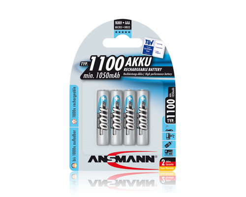 Vysokokapacitní nabíjecí baterie Ansmann AAA 1100 mAh.Nabíjecí baterie Ansmann AAA je určena pro aplikace náročné na spotřebu energie.