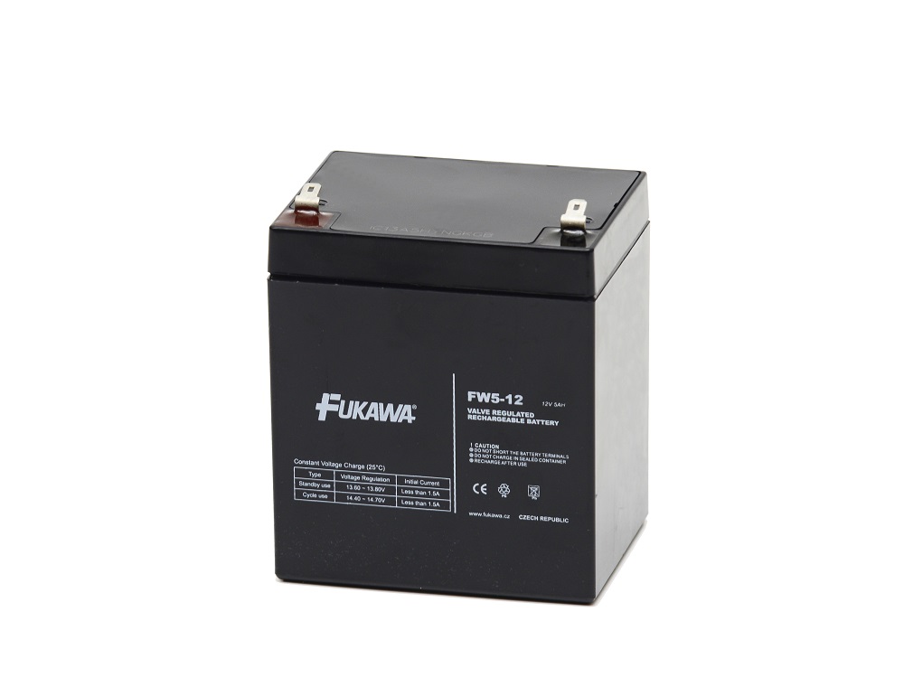 | Technický název: | olověný akumulátor; 12V; 5Ah; faston F1-4,7mm; životnost 5let |