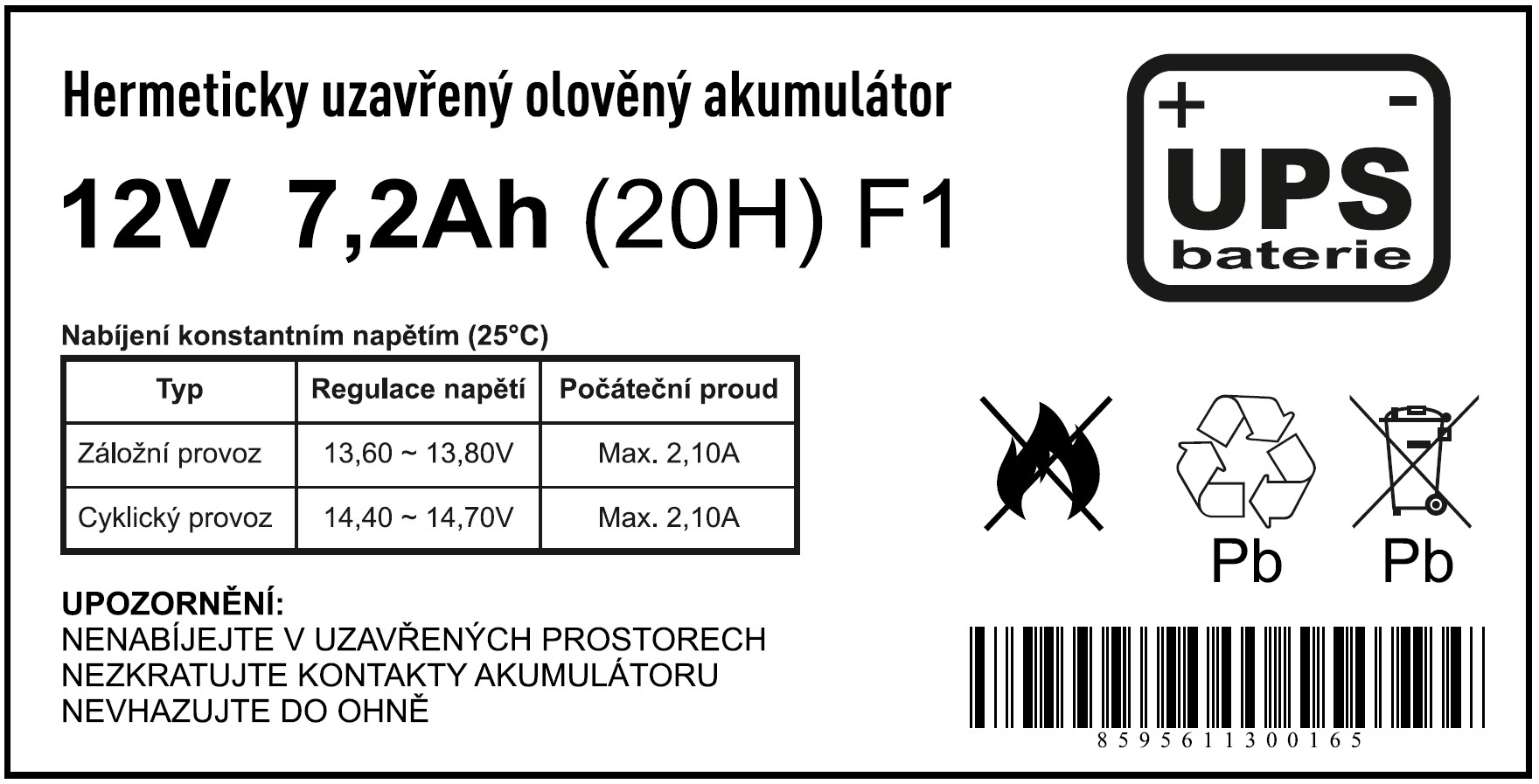 | Technický název: | 12V / 7,2Ah / faston F1 / živ. 5 let /olověná baterie |
