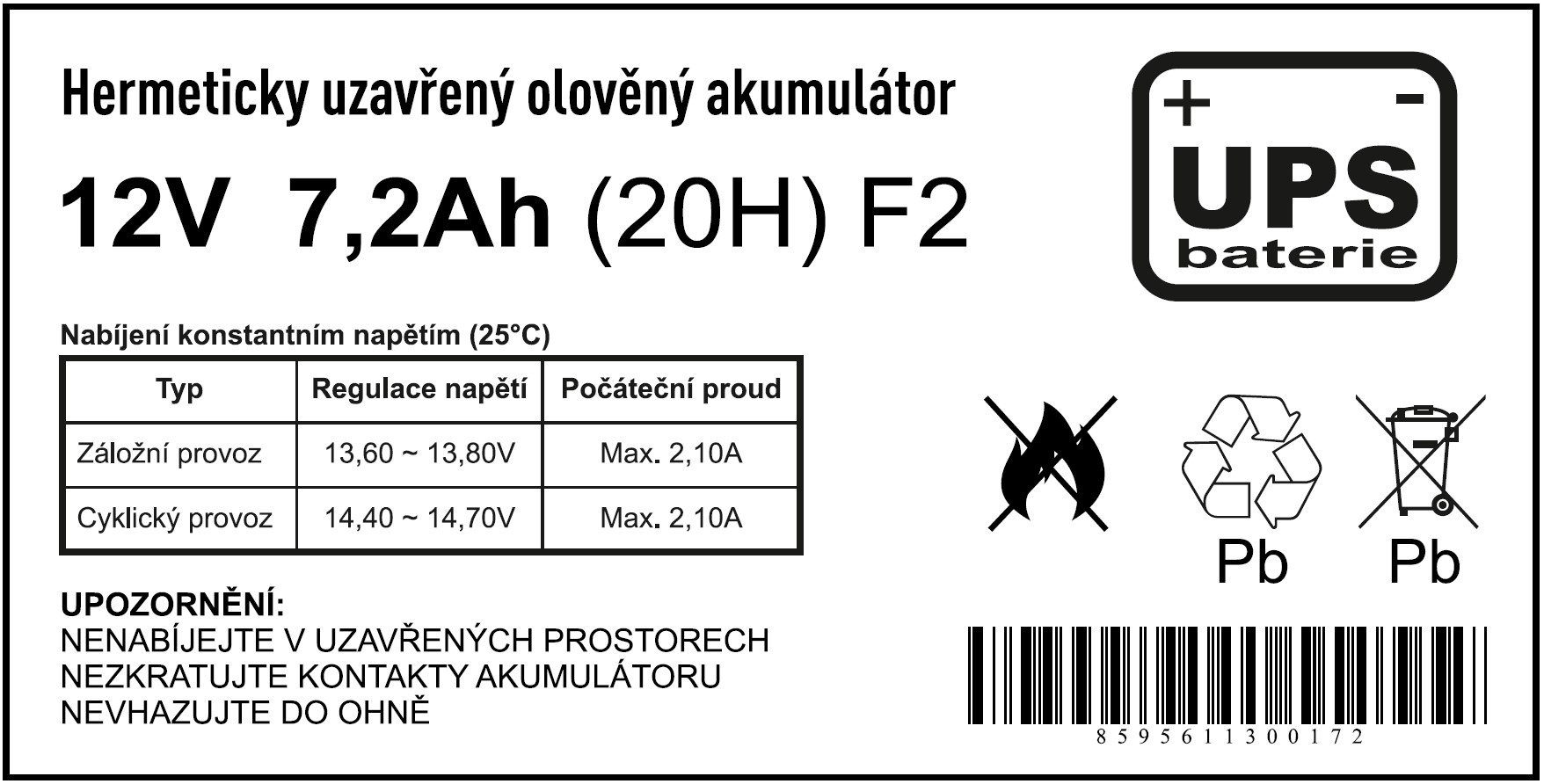 | Technický název: | 12V / 7,2Ah / faston F2 / živ. 5 let /olověná baterie |