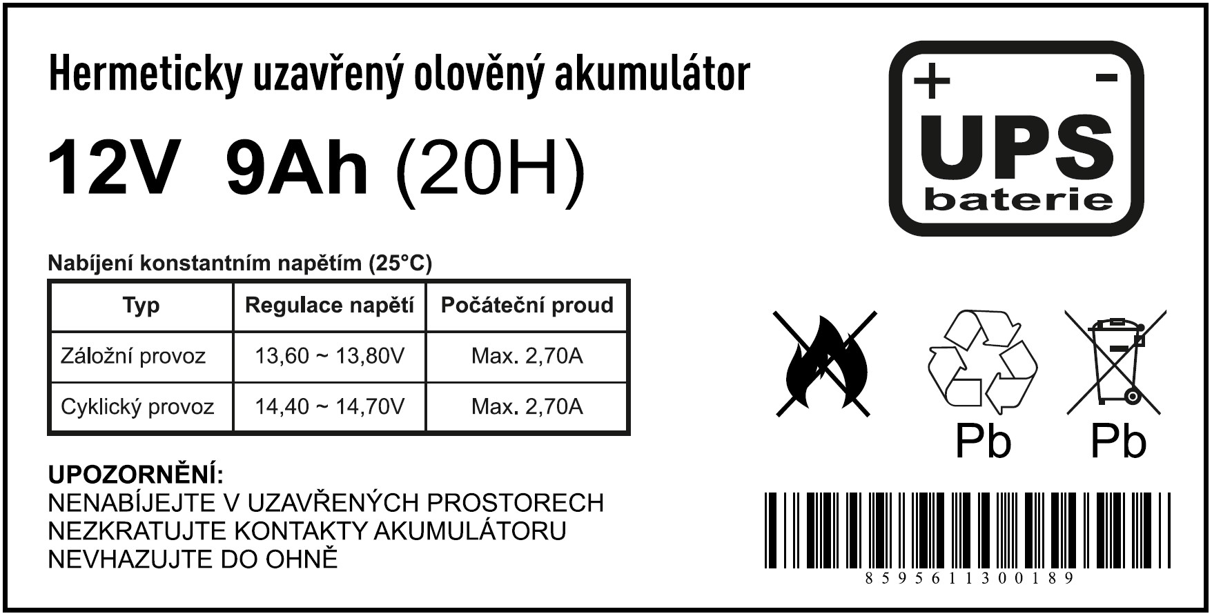 | Technický název: | 12V / 9Ah / faston F2 / živ. 5 let /olověná baterie |