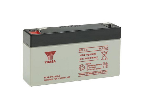 YUASA NP1,2-6 je olověný hermeticky uzavřený akumulátor s životností 3-5let.