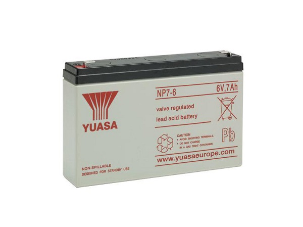 YUASA NP7-6 je olověný hermeticky uzavřený akumulátor s životností 3-5let.
