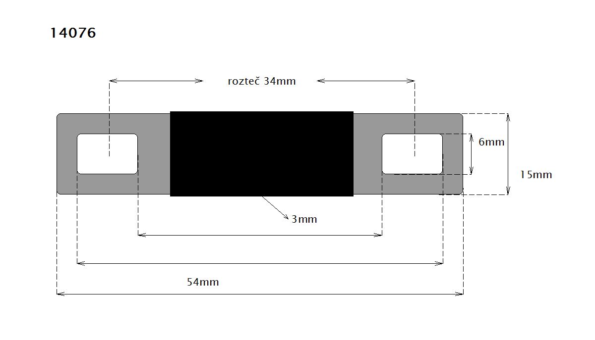 | Technický název: | Cu spojka pevná (54*15*3mm) rozteč 34mm; M6 |