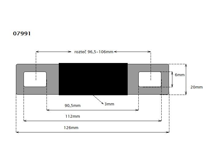 | Technický název: | Cu spojka pevná (126*20*3mm) pro rozteč 97-106mm, M6 |