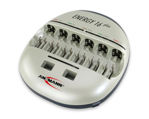 Mikroprocesorem řízená Hi-tech (100-230V) nabíječka Ansmann Energy 16 Plus pro NiCd a NiMH akumulátory s výstupem USB. Současně lze nabíjet jakékoliv kombinace uvedených akumulátorů. Nabíjecí čas je v závislosti na kapacitě a stavu akumulátorů.Vlastnosti:
