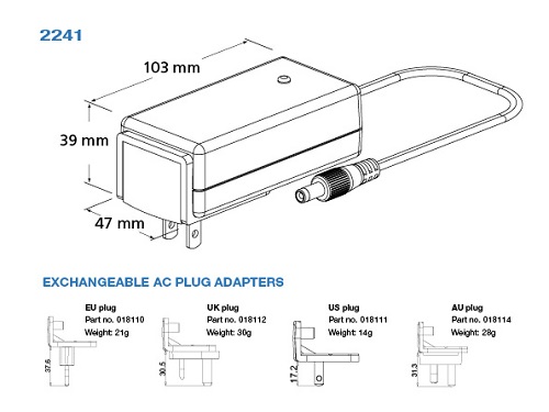 • Výměnné AC vstupní konektory - 018112 UK - 018111 US - 018110 EU (není součástí)