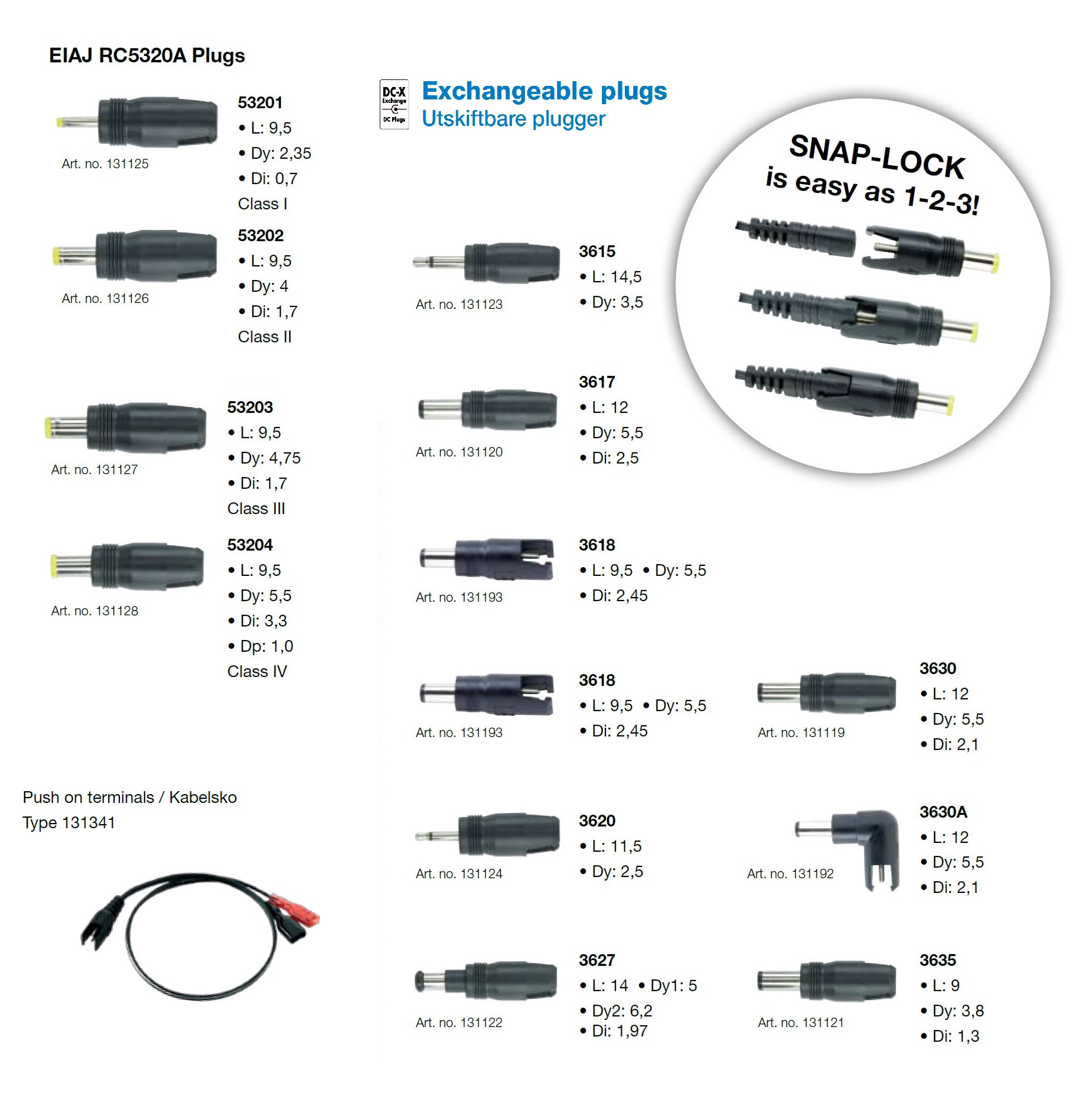 • nabíjecí konektory výměnné EIAJ RC5320A Plugs