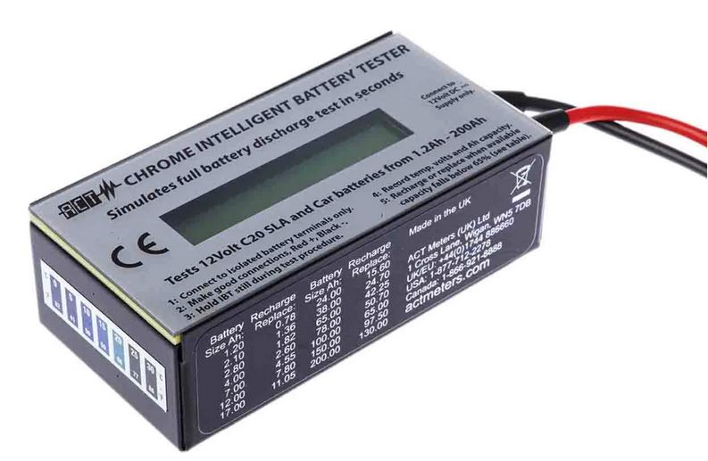 ACT CHROME - inteligentní tester olověných 12V akumulátorů o kapacitě 1,2 - 200 Ah.Tester měří napětí akumulátoru, teplotu okolí a kapacitu. Test trvá několik vteřin a výsledkem testu je kapacita akumulátoru v Ah.